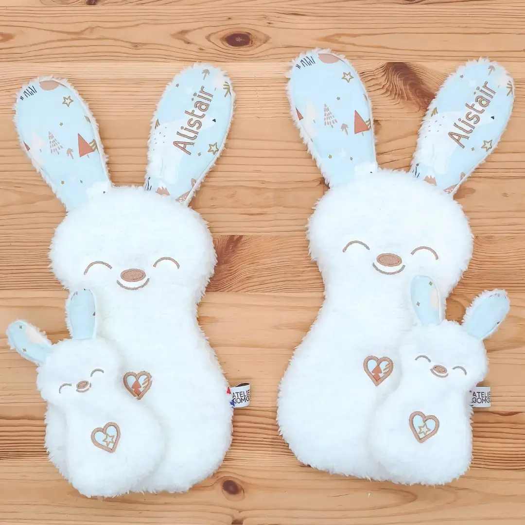 - Personnalisation possible : Broderie du prénom ou du surnom de votre enfant au dos des petits ainsi que sur l'oreille des grands.